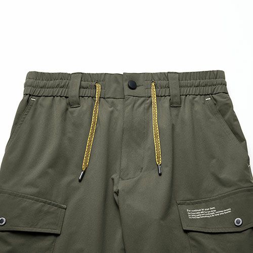 カジュアルで軽快に着こなせるカーゴジョガーパンツ!!身体動きに対する追従性に優れた機能糸SPEEDRYの天竺ニットで吸水性や速乾性など機能性も魅力 ●機能糸SPEEDRY●ウエスト平ゴム●ウエスト紐(オレンジ)※ストッパーあり※紐は裏表で結べる仕様※着脱型・再帰性反射プレート装備●前面5つ、後面3つポケット※右カーゴポケットにピスネーム●ストレッチ●吸汗速乾●UVカット●抗ピリング