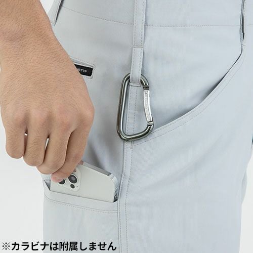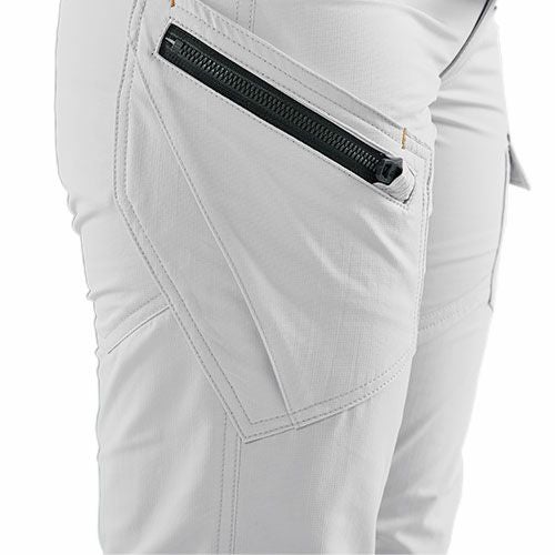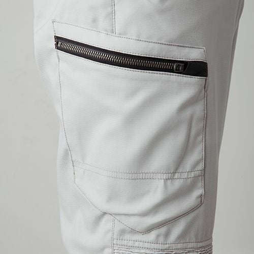 ワールドクラスのハイマテリアルを惜しげもなく使用したナイロンワークウェアの最高峰モデル ・大好評を博した#3482(ジョガーパンツ)等と同素材を使用したセットアップワークウェアのニューモデルです・アウトドア、スポーツ、ストリートカジュアルの要素を絶妙なバランスで融合したアイズフロンティアならではのデザイン性の高い1着。パンツ単体ではファン付きウェアとの相性も抜群・素材は世界トップクラスのナイロン素材メーカーデリカシー社製を採用。高品質なフルダルナイロン糸を使用することにより、ハイブランドアウトドアウェアと同等の高級感を実現。淡色シルバーグレーも抜群の抜け防止効果を発揮します。・伸長率タテ方向に約50%、ヨコ方向に約32%、伸長回復率(1時間後)タテ94%,ヨコ89%を誇る驚異のストレッチ性能を発揮。抜群の動き易さを実現します。・一般強度をクリアした薄手素材を採用し、真夏のワークシーンに快適さをプラスします。・着用時やお洗濯後のシワも少なく、手間いらずのイージーメンテナンスも大きな魅力です。・ビスロンファスナー、ドット釦等は国産YKK社製を使用。細部にまで品質に拘っています。