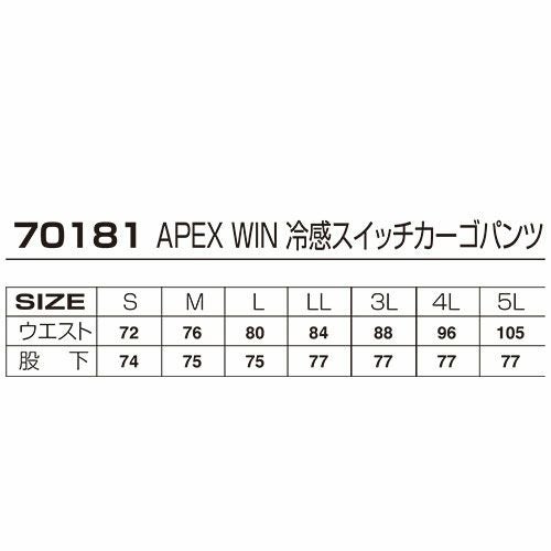 作業着 作業服 カーゴパンツ 春夏 アタックベース ATACK BASE APEX WIN 冷感ストレッチカーゴパンツ 70181 作業着 春夏 ストレッチ 軽量 冷感 ぴったりフィット