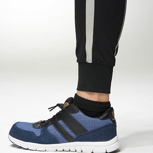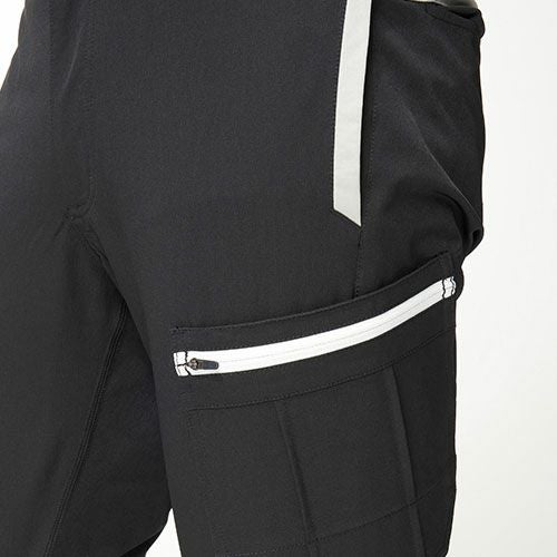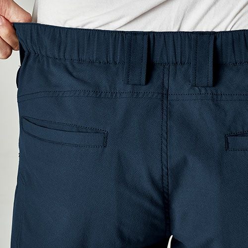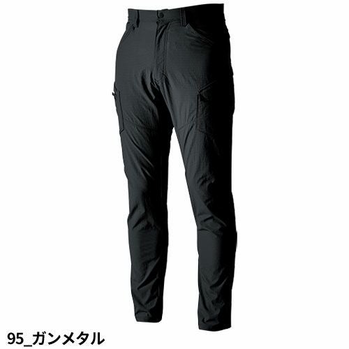 点接触でドライタッチ通気性とストレッチ性を両立ニッカーズリブカーゴパンツ ・タテ・ヨコに伸びるストレッチ性(約15%)・点接触でドライなタッチ感・裾リブ仕様・導電繊維混入で静電気もケア・製品エコ率10%のエコ素材を使用・ウエストゴム仕様