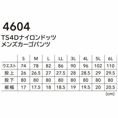 作業服 カーゴパンツ 藤和 TS Design TS4Dナイロンドッツメンズカーゴパンツ 4604 作業着 春夏 軽量 ストレッチ 帯電防止 撥水 防汚 カッコいい