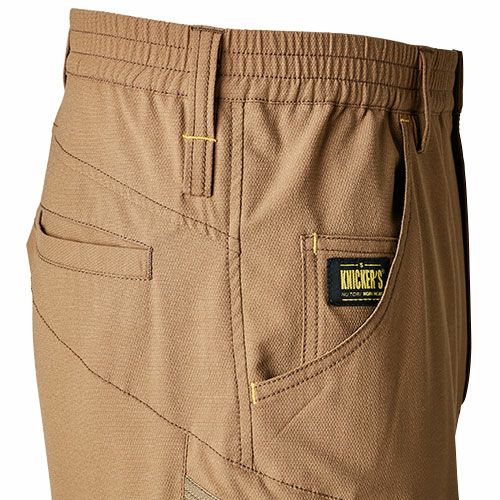 点接触でドライタッチ通気性とストレッチ性を両立ニッカーズカーゴパンツ ・タテ・ヨコに伸びるストレッチ性(約15%)・点接触でドライなタッチ感・裾リブ仕様・導電繊維混入で静電気もケア・製品エコ率10%のエコ素材を使用