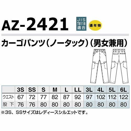 作業服 カーゴパンツ AITOZ アイトス ウルトラストレッチ カーゴパンツ(ノータック) 男女兼用 AZ-2421 作業着 春夏 防汚 帯電防止 UVカット 吸汗速乾 パンツ ズボン メンズ レディース 男女兼用 春夏 ワークパンツ