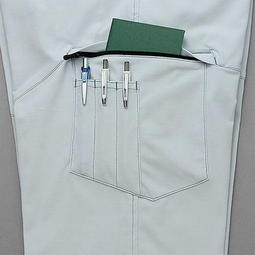 新次元の軽さ×全方向ストレッチ ワーキングウエアに最も重要な要素の一つであるストレスフリーを実現する新次元のストレッチ素材(Scrumtech-U) を採用。高弾性糸を締め上げ、高密度に編み上げることで高いストレッチ性を獲得。すぐれた保形性とおどろくほどのしなやかさ美しい表面感を持ち、丈夫で、軽く、さらに防汚・帯電防止の機能がウルトラストレスフリーなワーキング環境を実現します。