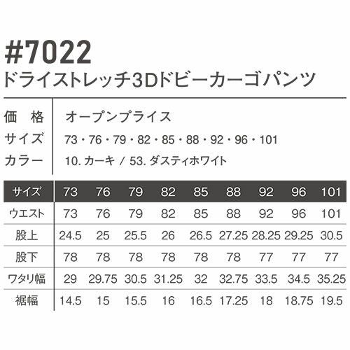 アイズフロンティアが見据えるワークウェアの新たな地平纏え、シーンに縛られないその孤高の存在感を ・立体的な織り構造により、汗ばむ季節でもお肌への点接触を実現する3Dドライストレッチ素材を採用。一般基準を大きく凌ぐ高い吸水性と速乾性能を発揮します。・紫外線遮蔽率は最高レベルの99%/UPF50を誇り、過酷な夏場の疲労度軽減が期待されます。・綿高混率素材でありながら、特殊な素材構造によるシワ軽減と、適度な伸長回復率(1時間後約81%)により、ハリのある型崩れの少ないスタイリングをキープします。・適度な伸長率(ヨコ・約22%)と、洗練された3Dカッティングでスタイリッシュなシルエットと動き易さを両立。・ライトウェイトの素材でありながら、基準値約1.5倍の引裂き強度を併せ持ちます。・身生地同系色のデザインラインテープを採用したスタンダードモデル#7020&#7022と、ビッグ合皮ワッペンやラバープリント等のデコレーションをふんだんに使用し、圧倒的な存在感を発揮する限定生産モデル#7028&#7029の異なる個性の2タイプをラインナップ。