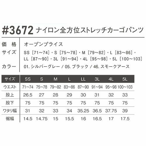 アイズフロンティア カーゴパンツ ナイロン全方位ストレッチカーゴパンツ #3672 作業服 作業着 春夏 I'Z FRONTIER 軽量 ドライ ストレッチ アウトドア スポーツ ストリート スタイリッシュ 動きやすい カッコいい カジュアル 快適