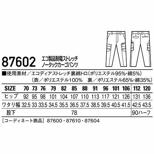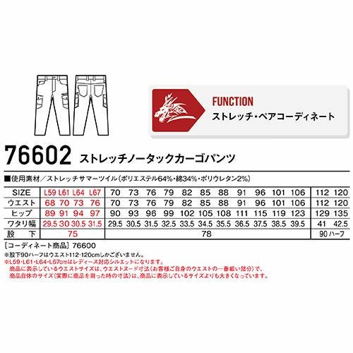 作業服 カーゴパンツ 自重堂 製品制電ストレッチノータックカーゴ 76502 作業着 春夏 Z-DRAGON スタイリッシュ カジュアル ストレッチ 帯電防止