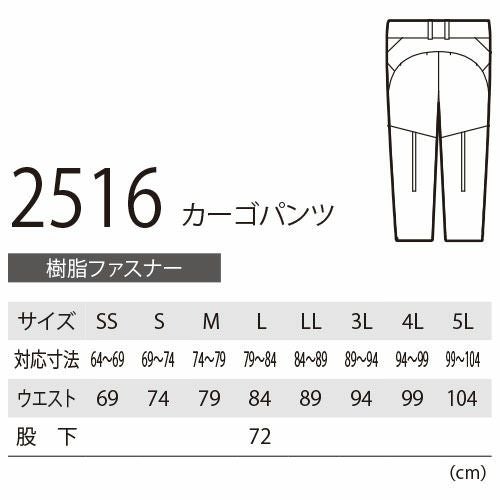 作業服 カーゴパンツ ジーベック XEBEC カーゴパンツ 2516 作業着 春夏 2WAYストレッチ 接触冷感 吸汗 速乾
