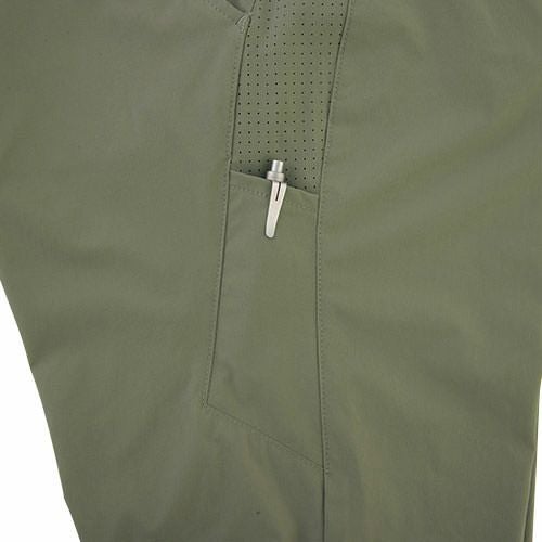 HOOHのレギンスカーゴパンツは耐久性の必要な膝上に強度と涼しさを兼ね備えたリップ素材を使用膝下には冷感コンプレッション素材を縫い合わせた新スタイルロゴ入り携帯ポケットと右ファスナー付きカーゴポケットでしっかりとした収納力です。