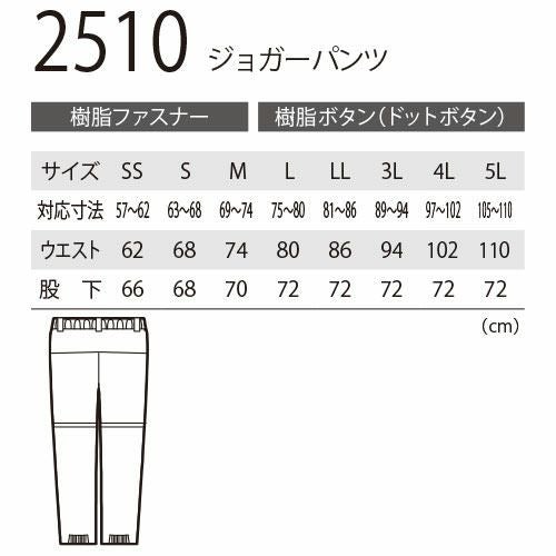 作業服 パンツ スラックス ジーベック XEBEC ジョガーパンツ 2510 作業着 春夏 2WAYストレッチ 接触冷感 吸汗 速乾