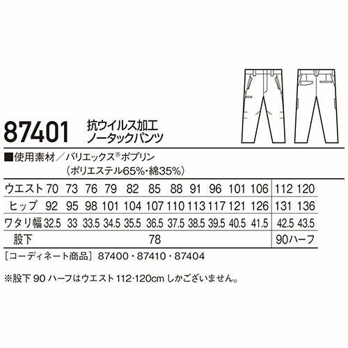 作業服 パンツ スラックス 自重堂 抗ウイルス加工ノータックパンツ 87401 作業着 春夏作業着 作業服 スラックス 春夏