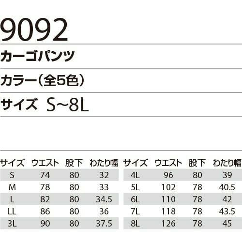 作業服 カーゴパンツ バートル BURTLE カーゴパンツ 9092 作業着 春夏作業着 作業服 カーゴパンツ 春夏