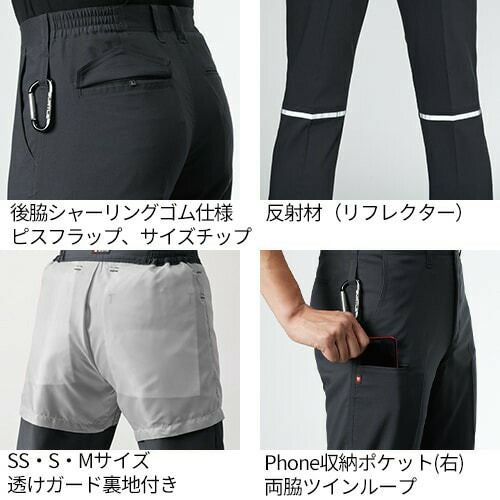 摩擦、摩耗に強いコーデュラナイロンを使用したニューワークスタイル ジーベックの新ブランド「クロスゾーン」シリーズ。ワーク・カジュアル・アウトドア・スポーツ・新素材等、様々な要素をクロスさせた新たなワークスタイルを展開。摩耗に強いコーデュラナイロンを使用した2WAYストレッチのワークウェアを展開。軽さ、動きやすさ、丈夫さ、ひんやりとした着心地を兼ね備えた素材と、パンツは大容量収納を兼ね備えたデザインで、夏のワークスタイルは収納性が少なくなるというデメリットを解消。単品パンツとコンプレッション・ワークポロなどの組み合わせにも最適なシリーズです。