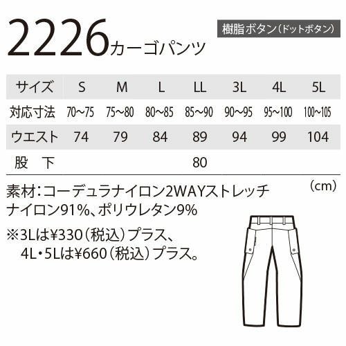 作業服 カーゴパンツ ジーベック XEBEC 2WAYストレッチカーゴパンツ 2226 作業着 春夏 ワーク カジュアル アウトドア スポーツ おしゃれ カッコいい