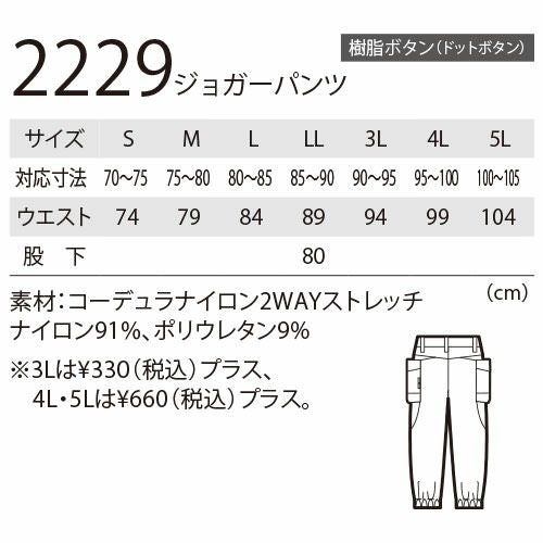 作業服 カーゴパンツ ジーベック XEBEC 2WAYストレッチジョガーパンツ 2229 作業着 春夏 ワーク カジュアル アウトドア スポーツ おしゃれ カッコいい