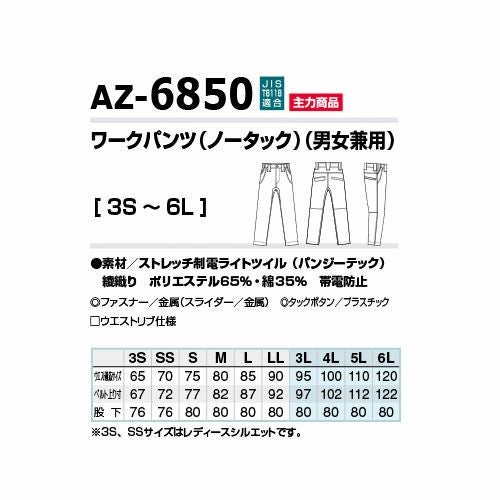 作業服 パンツ スラックス AITOZ アイトス ワークパンツ(ノータック)(男女兼用) AZ-6850 作業着 春夏 帯電防止 反射材 ストレッチ 男女兼用 ズボン メンズ レディース 男女兼用 春夏