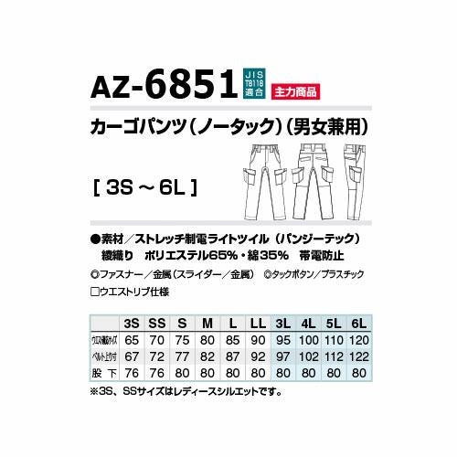 作業服 カーゴパンツ AITOZ アイトス カーゴパンツ(ノータック)(男女兼用) AZ-6851 作業着 春夏 帯電防止 反射材 ストレッチ 男女兼用 パンツ ズボン メンズ レディース 男女兼用 春夏 ワークパンツ
