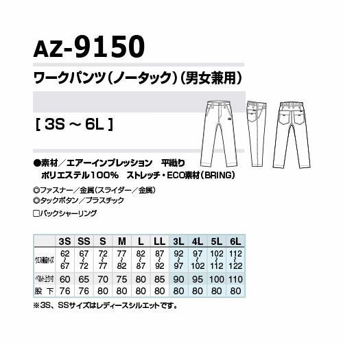 作業服 パンツ スラックス AITOZ アイトス ワークパンツ(ノータック)(男女兼用) AZ-9150 作業着 春夏 BRING Material 再生 エコプロダクト ストレッチ 帯電防止 反射材 ズボン メンズ レディース 男女兼用 春夏