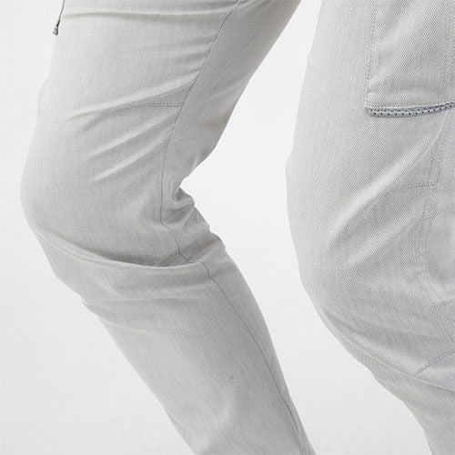 スリムシルエットで裾がスッキリし動きやすいジョガーパンツ ・コットン100%のデニムに比べて4倍以上の耐摩耗性を実現・高密度ナイロン66を混紡した織物・オーセンティックなデニムの見た目と手触り・ミリタリーユニフォームから開発された技術