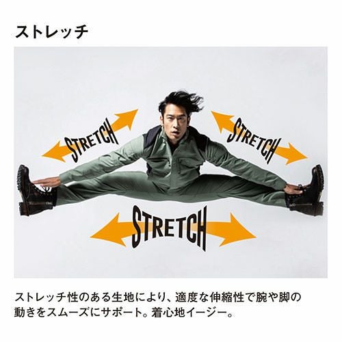 丈夫で伸縮性に優れたストレッチT/C素材。あらゆる現場に対応する帯電防止 JIS T8118 適合ウェア。 時代とともに多様化する消費者のニーズに応え企業向けワークウェアのみならずファッションに敏感な個人ワーカーの心にも響く洗練されたスタイリングが特徴