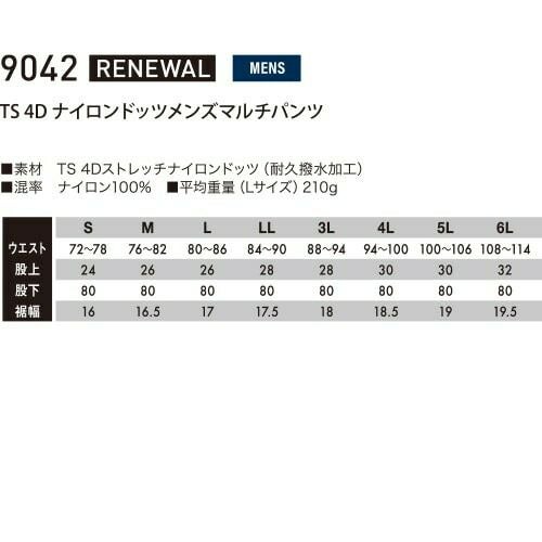 作業服 パンツ スラックス 藤和 TS Design NEO撥水ドットエアーメンズパンツ 9042 作業着 春夏 超耐久撥水 超軽量 ストレッチ 形態安定 ビジネス スーツ