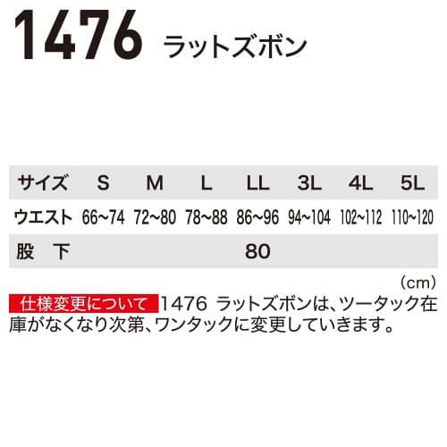 ジーベック 1476 ワンタックラットズボン【作業服 カーゴパンツ 作業ズボン】春夏用 作業服 メンズ 男性 作業着 作業パンツ パンツ スラックス 腿ポケット有 定番