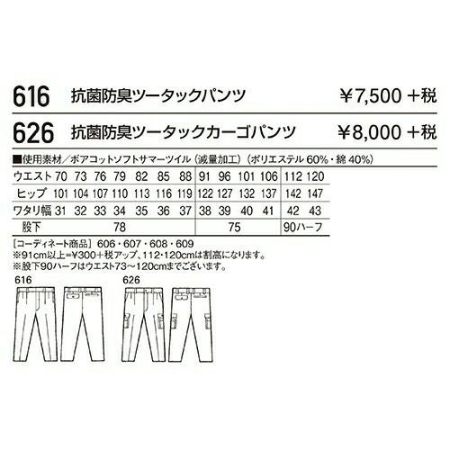 自重堂 DESK 作業服 616 ツータックパンツ 春夏 メンズ 作業着 腿ポケット無 ボトムス スラックス