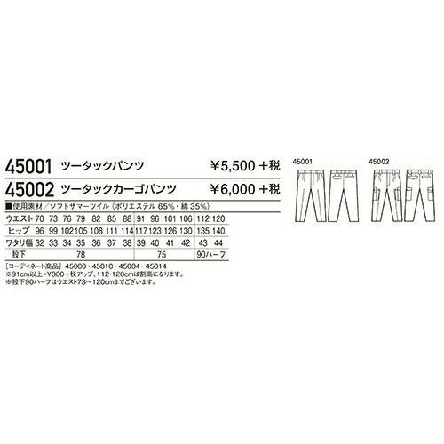 自重堂 作業服 45301 ツータックパンツ 春夏 ユニセックス メンズ・レディース対応 作業着 スラックス