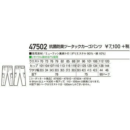 自重堂 Field Message 作業服 47502 ツータックカーゴ 春夏 メンズ 作業着 ポケット付き ボトムス カーゴパンツ