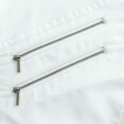 逆立ちしても大丈夫!新「トリプル・ファイブ」登場! 立体裁断で腕の動きをスムーズにするNEWバンザイカットに、さらに動きやすく進化したNEWプリーツロンをメッシュ仕様で採用。落下の心配がないファスナー付き5ポケット仕様で収納力もアップ。通気性のいいサワークロスを使用した新シリーズは、タフな現場から工場作業までオールマイティにサポートします。