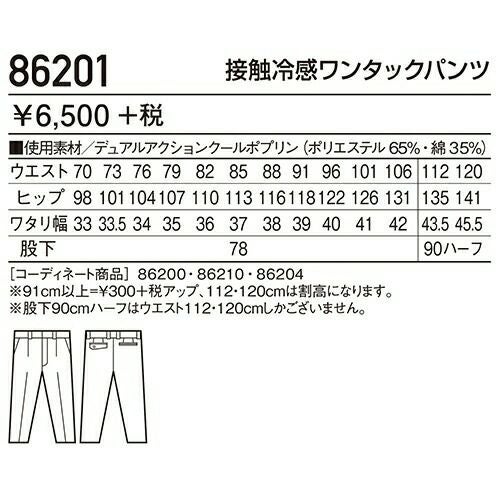 自重堂 作業服 86201 ワンタックパンツ 春夏 メンズ 作業着 腿ポケット無 ボトムス ワークウエア スラックス