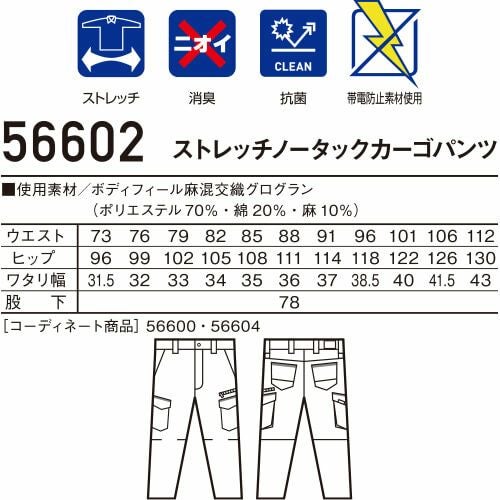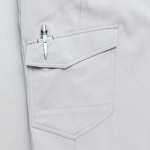 通気性に優れた伸びる素材で、快適な履き心地のカーゴパンツ ドビークロスの地模様の連続によって表現される「ドビーストライプ」適度な張りがあり、シワになりにくい軽くて通気性が良く、汗をかいてもすぐ乾く伸びる素材で静電気もおきにくい、着心地爽快なストレッチユニフォーム