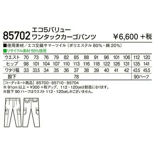 自重堂 作業服 85602 ワンタックカーゴ 春夏 メンズ 作業着 ポケット付き ボトムス ワークウエア カーゴパンツ