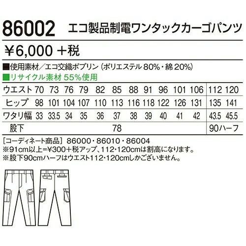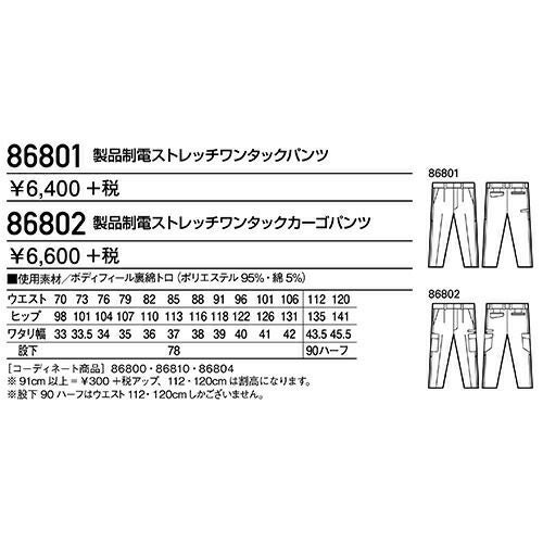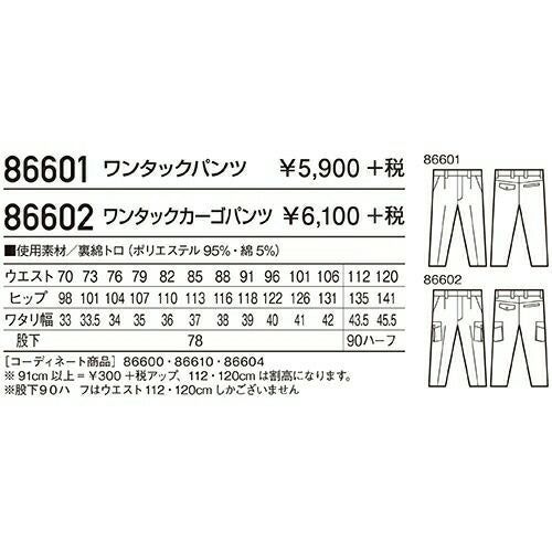 自重堂 作業服 86002 ワンタックカーゴ 春夏 メンズ 作業着 ポケット付き ボトムス ワークウエア カーゴパンツ