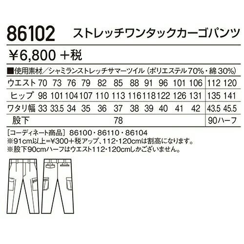 自重堂 作業服 86102 ワンタックカーゴ 春夏 メンズ 作業着 ポケット付き ボトムス ワークウエア カーゴパンツ