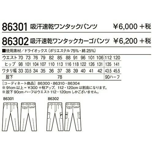 自重堂 作業服 86302 ワンタックカーゴ 春夏 メンズ 作業着 ポケット付き ボトムス ワークウエア カーゴパンツ