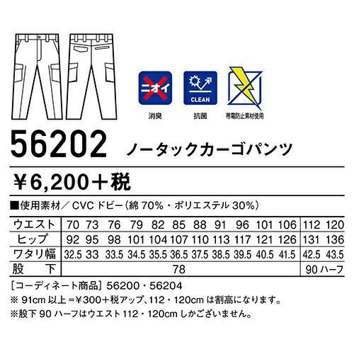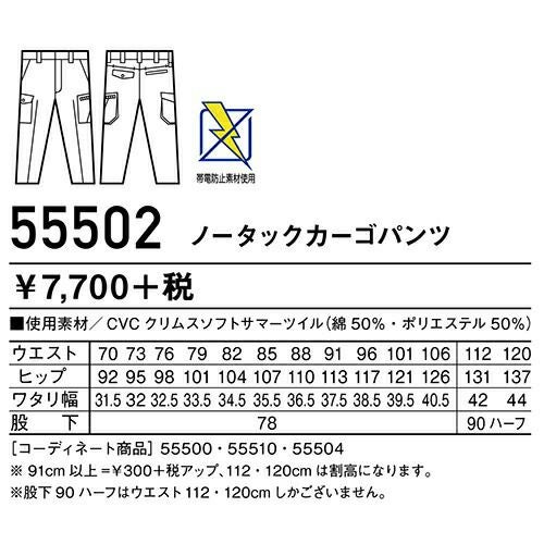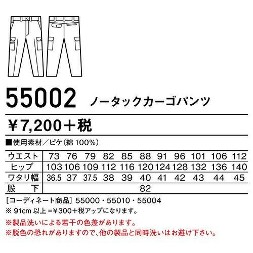 自重堂 Jawin 作業服 55602 ノータックカーゴ 春夏 メンズ 作業着 ポケット付き ボトムス カーゴパンツ
