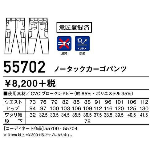 自重堂 Jawin 作業服 55702 ノータックカーゴ 春夏 メンズ 作業着 ポケット付き ボトムス カーゴパンツ