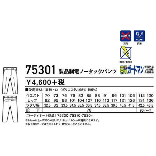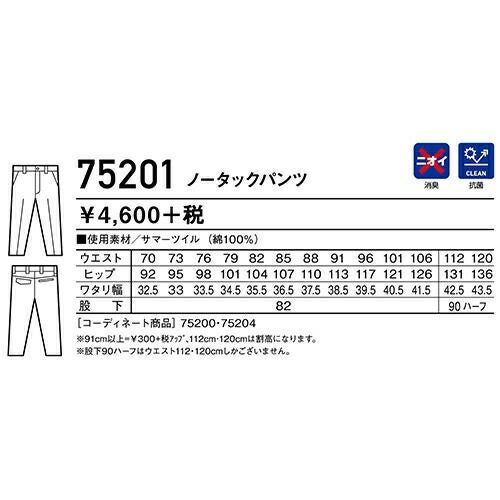 自重堂 Z-DRAGON 作業服 75001 ノータックパンツ 春夏 メンズ 作業着 腿ポケット無 ボトムス スラックス