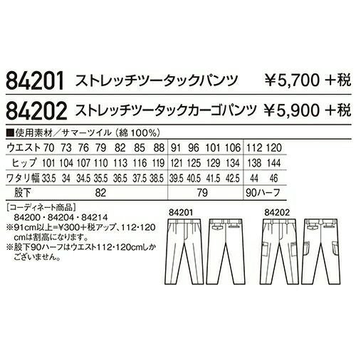 自重堂 作業服 84102 ツータックカーゴ 春夏 メンズ 作業着 ポケット付き ボトムス ワークウエア カーゴパンツ