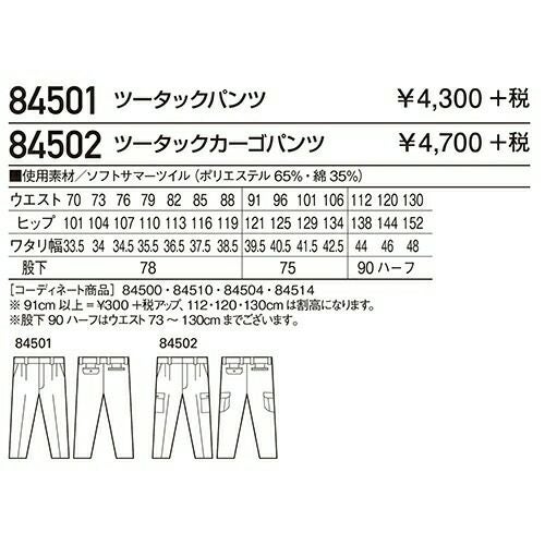 自重堂 作業服 84502 ツータックカーゴ 春夏 メンズ 作業着 ポケット付き ボトムス ワークウエア カーゴパンツ