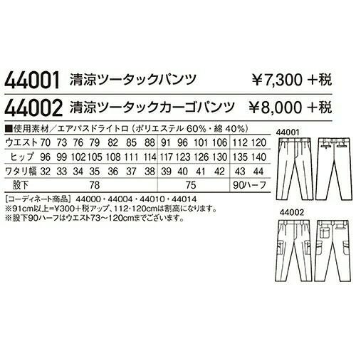 自重堂 作業服 44601 ツータックパンツ 春夏 メンズ 作業着 腿ポケット無 ボトムス ワークウエア スラックス