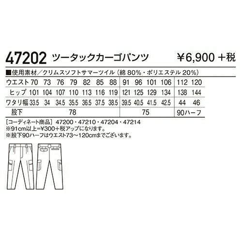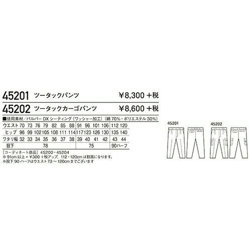 自重堂 作業服 45202 ツータックカーゴ 春夏 メンズ 作業着 ポケット付き ボトムス ワークウエア カーゴパンツ