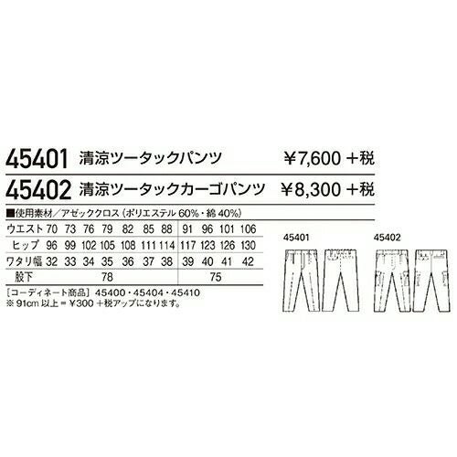 自重堂 作業服 45401 ツータックパンツ 春夏 メンズ 作業着 腿ポケット無 ボトムス ワークウエア スラックス