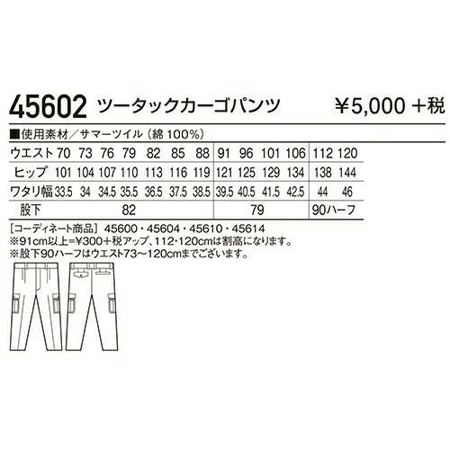 自重堂 作業服 45902 ツータックカーゴ 春夏 メンズ 作業着 ポケット付き ボトムス ワークウエア カーゴパンツ