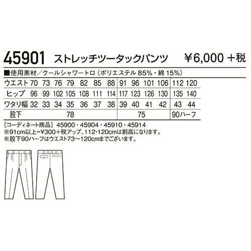 自重堂 作業服 45901 ツータックパンツ 春夏 メンズ 作業着 腿ポケット無 ボトムス ワークウエア スラックス