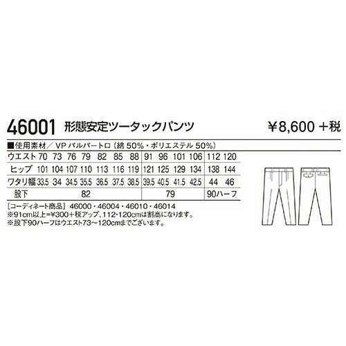 自重堂 作業服 46001 ツータックパンツ 春夏 メンズ 作業着 腿ポケット無 ボトムス ワークウエア スラックス