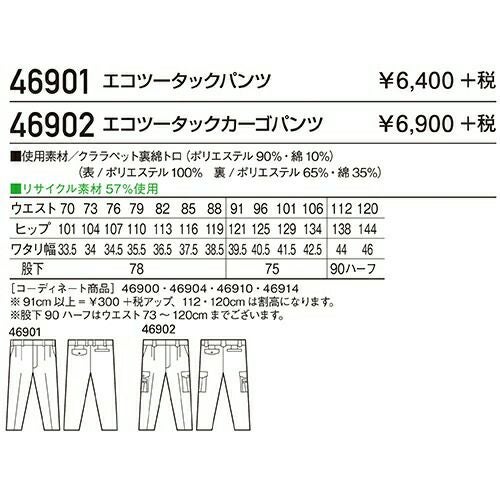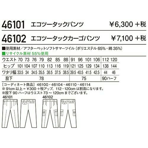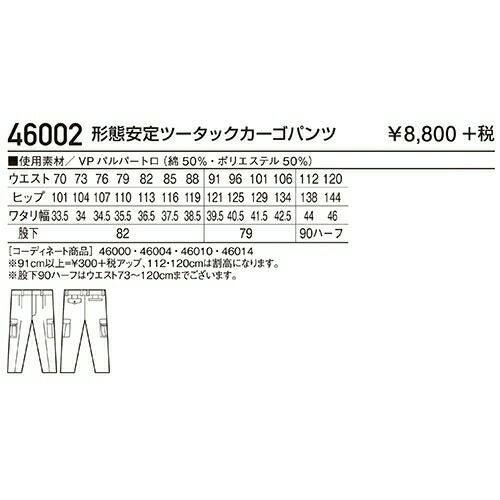 自重堂 作業服 46002 ツータックカーゴ 春夏 メンズ 作業着 ポケット付き ボトムス ワークウエア カーゴパンツ