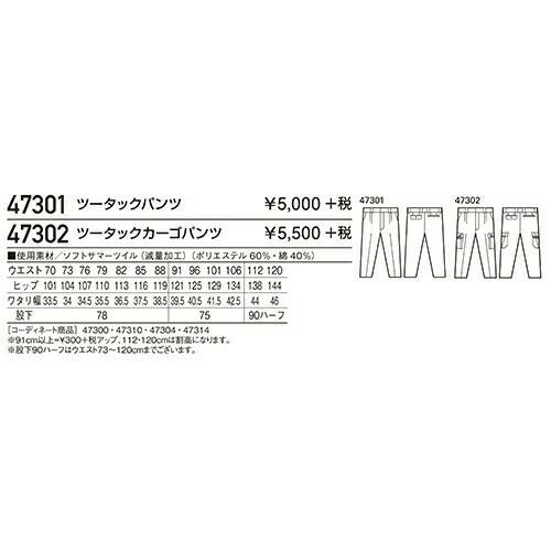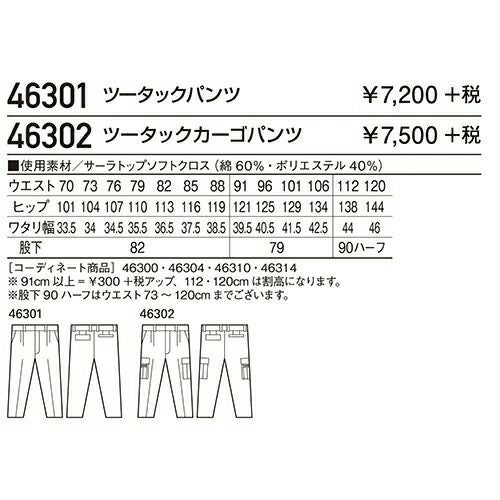 自重堂 作業服 46302 ツータックカーゴ 春夏 メンズ 作業着 ポケット付き ボトムス ワークウエア カーゴパンツ