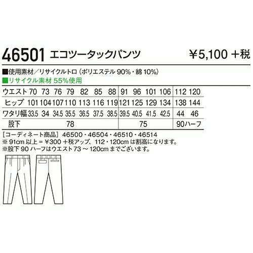 自重堂 作業服 46501 ツータックパンツ 春夏 メンズ 作業着 腿ポケット無 ボトムス ワークウエア スラックス